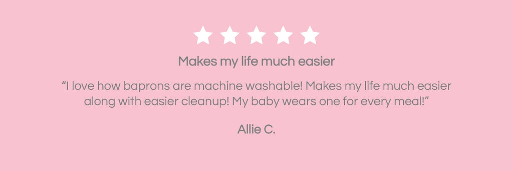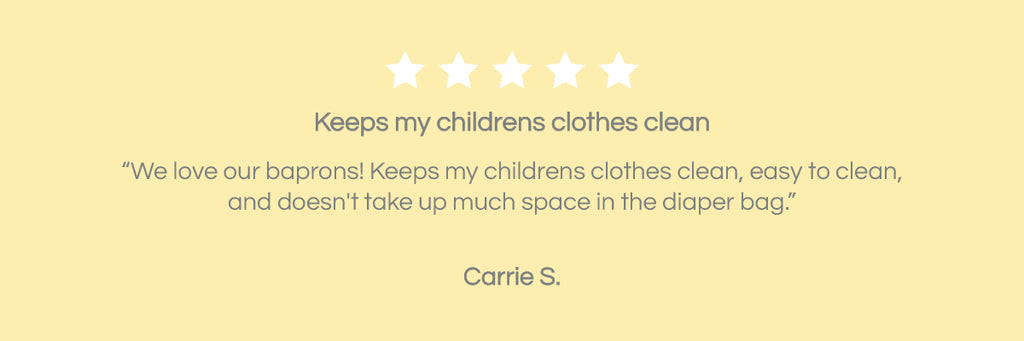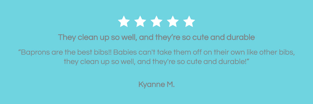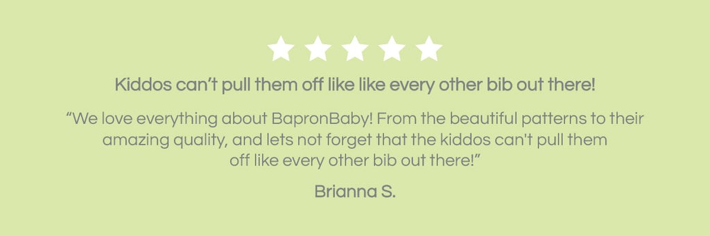 I cannot say enough about our bapron!!! I love all the beautiful prints, how it completely covers our clothes, it’s so easy to clean to be ready for the next meal and the best part...my daughter can’t pull it off like she does bibs! It’s perfect for mealtime, sensory play activities and crafts! Bapron baby customer service is also amazing! Thank you for such a wonderful product!
