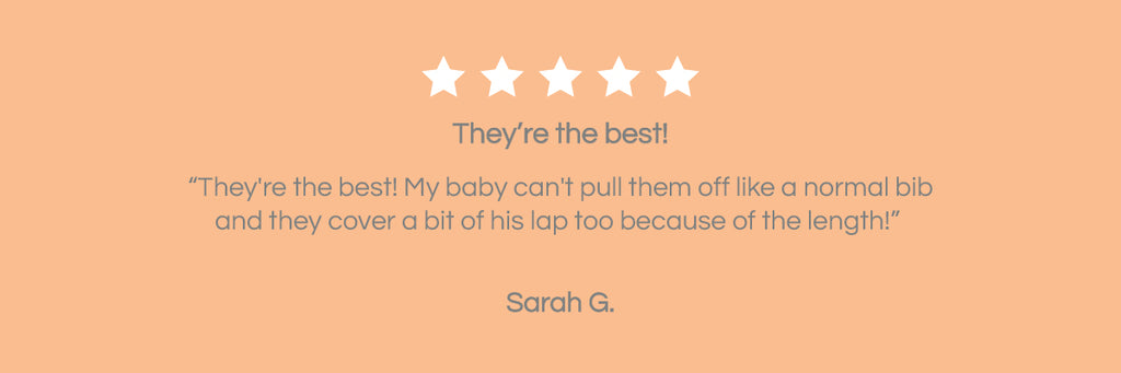 I cannot rate BapronBaby baprons high enough! I found them as a desperate mom whose daughter cut her neck with a traditional Velcro bib. I saw that the baprons tie at the mid-back and knew we had to give them a try. We were thrilled, and have used them ever since!! We share with everyone we know, because I so believe in this product and company!