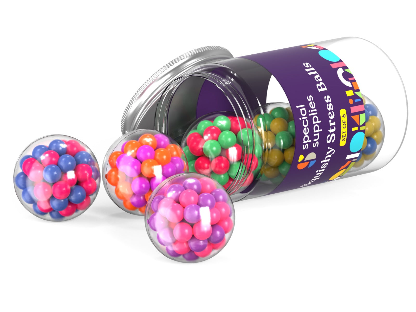Squish your stress, anxiety, and tension with these squishy stress balls that offer colorful, squishable fun.