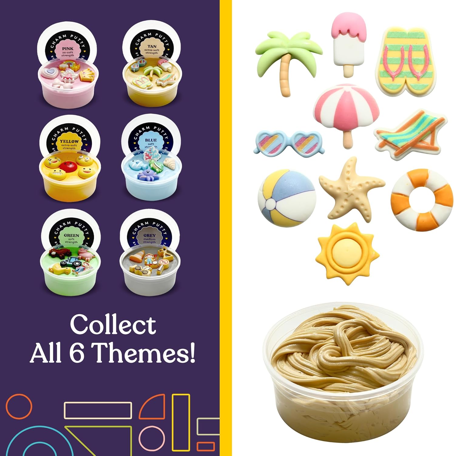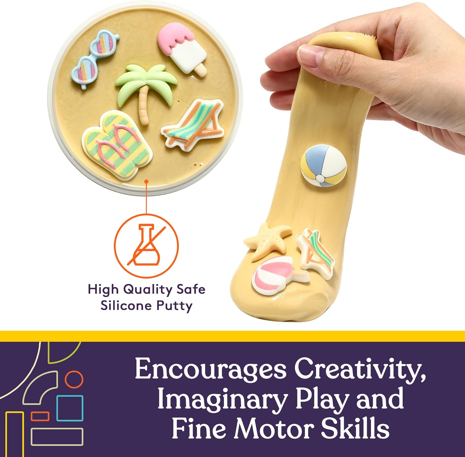 Sensory Therapy Putty for Kids and Adults with 10 Cute Charms - Resistive Hand Exercise Stress Relief Therapy Putty, Five Ounces of Each Putty (Beach Set - Strength: X-Soft)