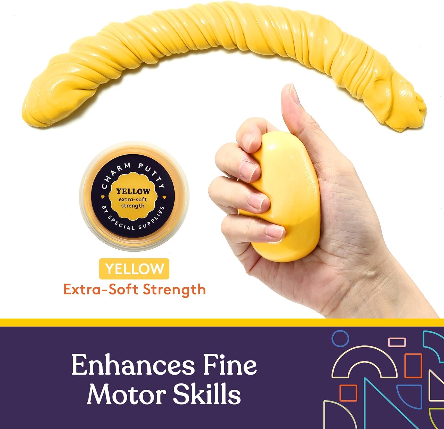 When it comes to keeping our hands busy it’s important to have soft, yet engaging outlets that are gentle on your fingers and joints but provide the kind of hands-on stimulation that’s good for your mind and body. That’s why we developed Special Supplies Therapy Putty and paired it with soft, durable charms. These cute and colorful occupational putties are a wonderful way to keep young kids stimulated, or to help adults recover their strength and dexterity. And because they come in bright, fun colors that are more engaging, you’ll love finding ways to keep your kids active or relieve your own stress when those afternoons at work are wearing you down. Great for squeezing, pinching, pulling, and rough hands-on play, you’ll love to find new and creative ways to make our putty a part of your (or your child’s) day-to-day life.