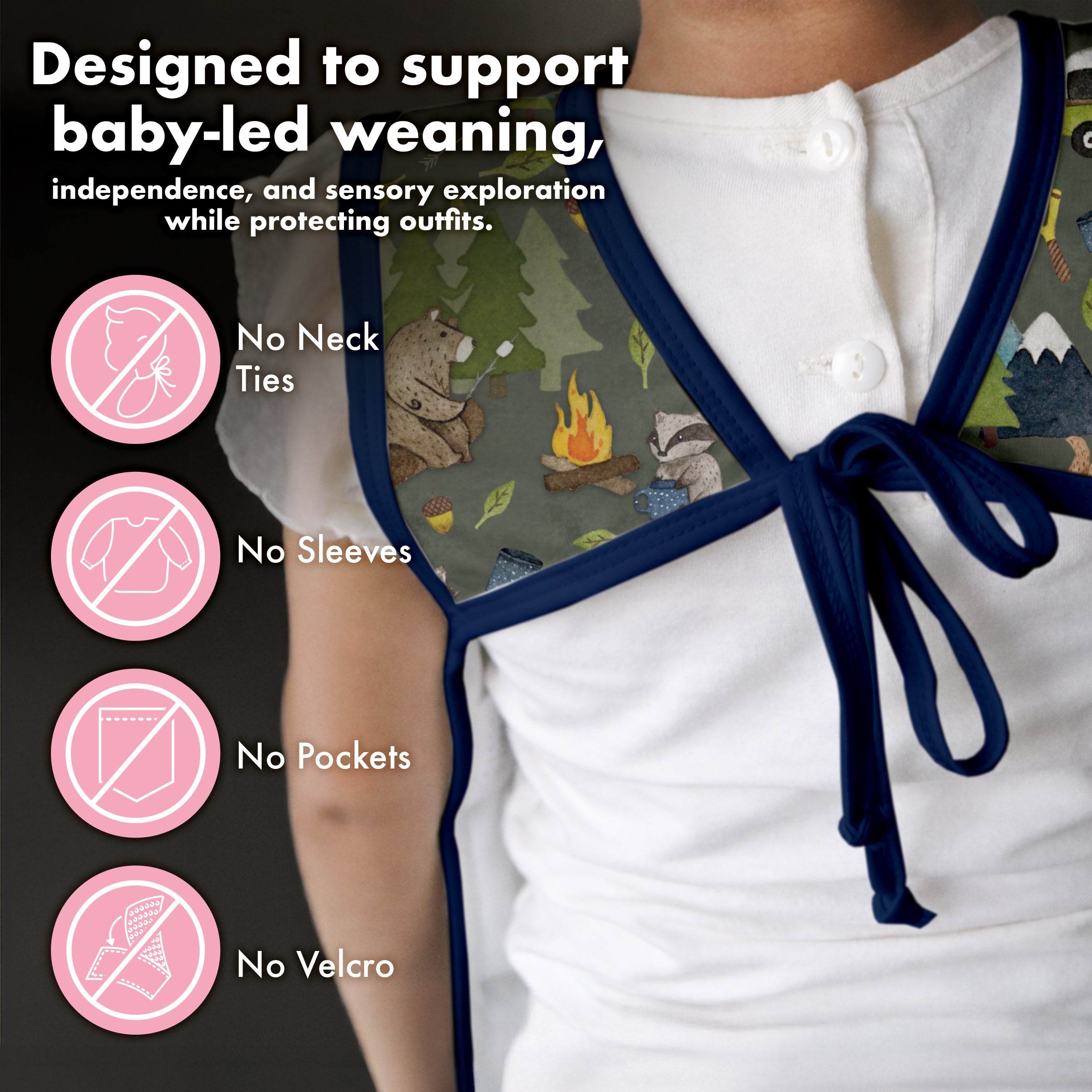 Whether it’s spaghetti night, finger painting, or sensory bins, the Bapron® is your go-to mess solution.