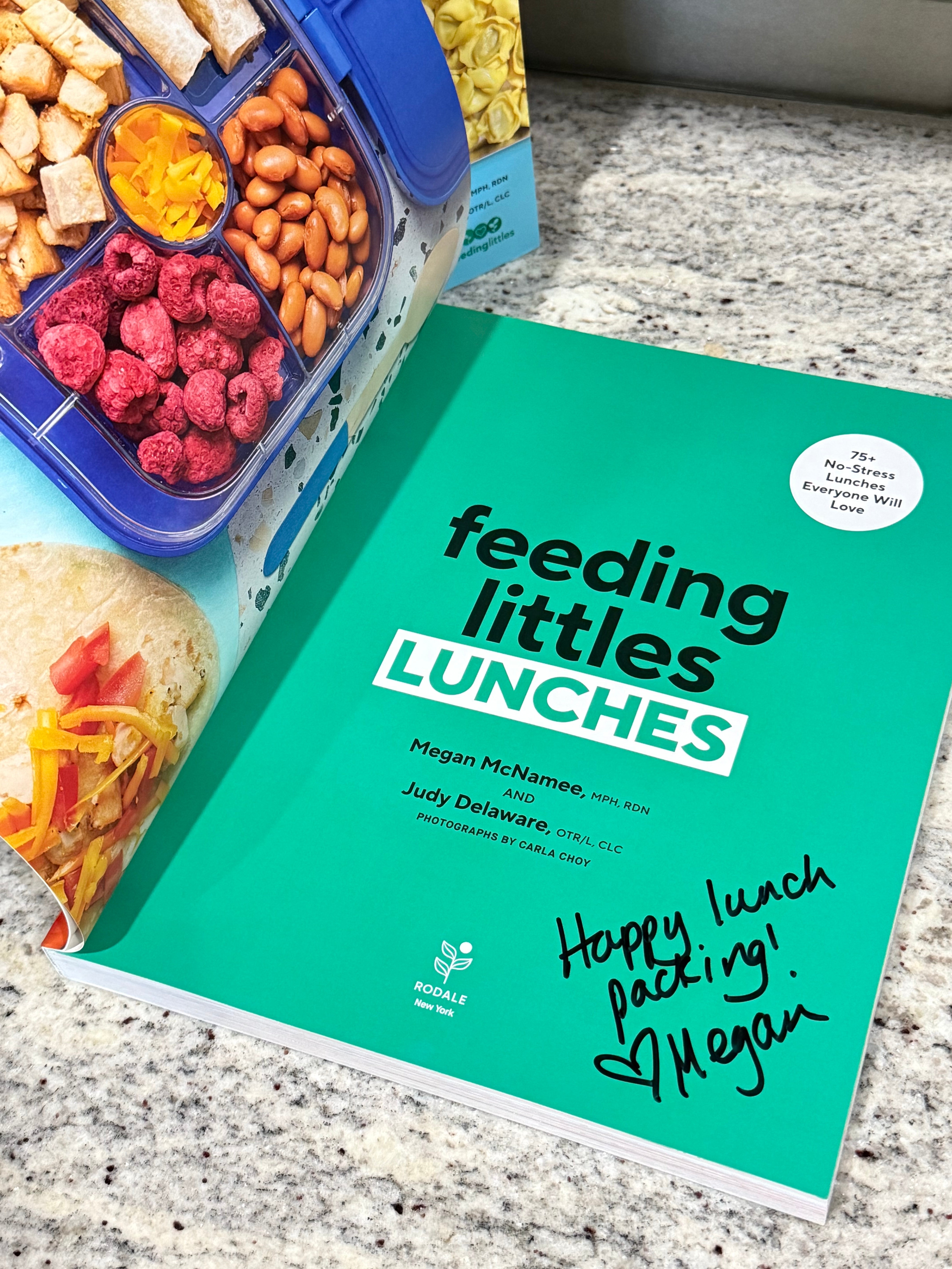 In a lunch packing rut? Megan McNamee and Judy Delaware, the founders of Feeding Littles, are here to help with the ultimate lunch box resource. Feeding Littles Lunches is complete with 75+ lunches that are quick to assemble, safe and easy for kids of all ages to eat, and balanced in nutrients for growth, learning and play. Each lunch idea is easily modified for nine of the most common allergens and includes tips for picky eaters, plus vegetarian swaps and “I Can’t Even” tips to make lunch packing even easier. Feeding Littles Lunches is not a recipe book because, let’s face it, most parents don’t want to spend hours packing lunches. Rather, it’s an inspo bookwith a full-page photo for every lunch, meant to be used with your child as a visual reminder for delicious and easy new ideas that you can assemble from simple ingredients.