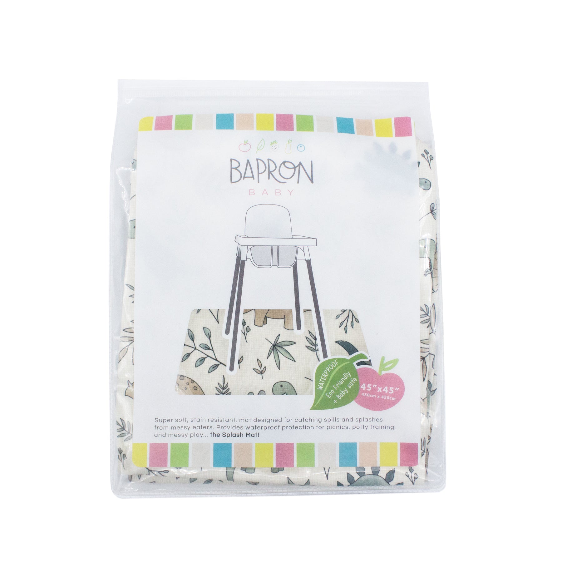 BapronBaby's unique waterproof fabric is stain resistant, and machine washable. Three cheers for no more scraping dried juice spots off the tile and scrubbing oatmeal out of the carpet! This mat weighs less than 8oz. and folds up to the size of a small book for easy transport.