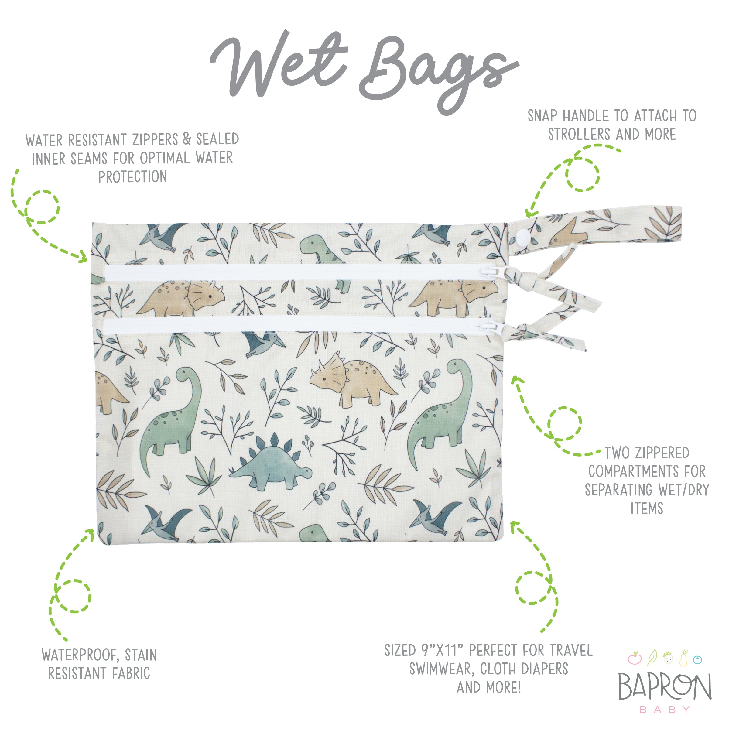 Our newest addition to the BapronBaby product line is a super soft zippered pouch with two compartments for separated wet/dry storage. The Waterproof Wet Bag is made with love to keep wet stuff wet, and dry stuff dry!