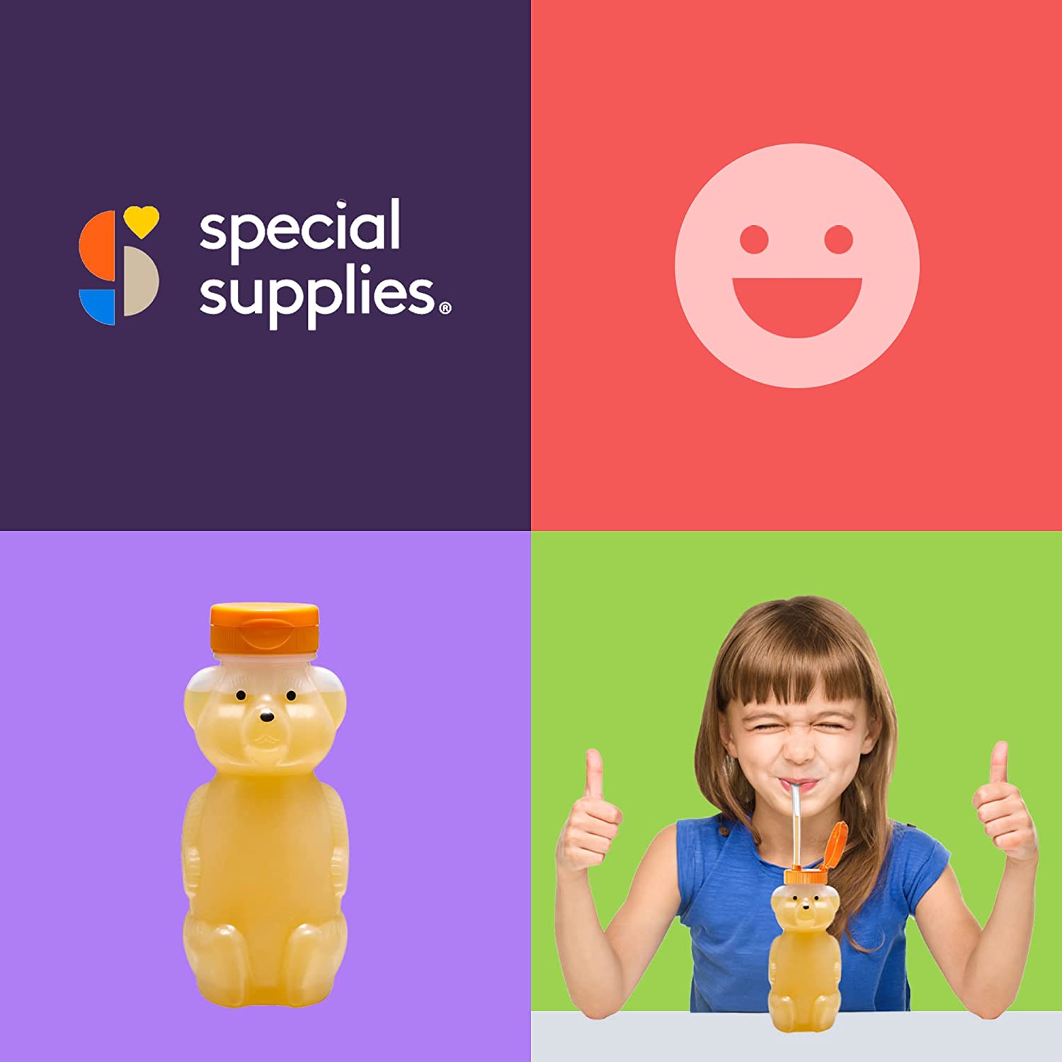 Make it easier for your growing toddler or child with special needs to drink through a straw with these fun, easy-to-use, squeezable honey bear drink cups.